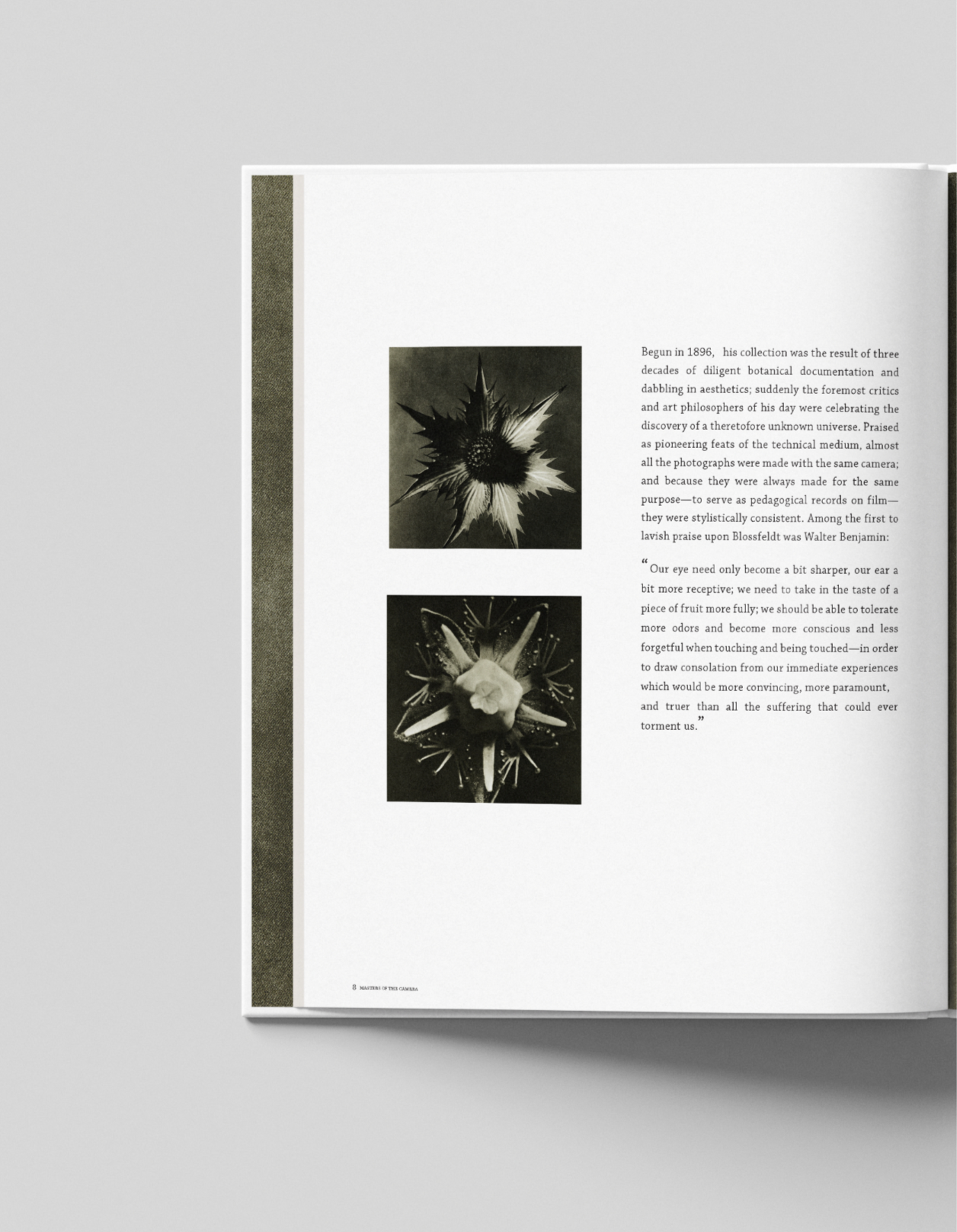 This assignment focused on the plant photography of Karl Blossfeldt. Each student worked with the same selection of his photographs to create a book titled Master of the Camera, with creative freedom in layout, organization, and presentation. The challenge was to develop a unique visual approach that enhanced the work through design, considering pacing, scale, typography, and composition. The project explored how thoughtful structure can shape viewer engagement with historical photography, allowing us to reinterpret Blossfeldt’s intricate botanical studies while honoring their precision and detail.